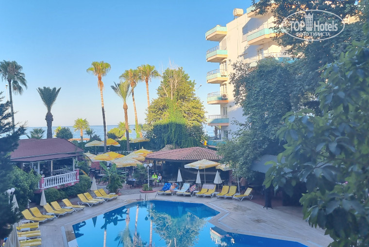 3. Еда - в принципе, мне как непривередлевому человеку было что поесть....кто был в турецких непритязательных 3-4-5 найдет здесь то же самое. Бар у бассейна - с 10-00 до 23-00, по русски понимают, отношение нейтрально-доброжелательное. просить смешать сложный коктейль смысла нет, но добавить в пиво водку, по просьбе конечно, могут))). Пиво только троя, субъективно 1-2 градуса. Напитки - бодяга типа юппи. + на пляже с 11-00 жарили луковые кольца, или фри, или типа палочки картофельные ну и огурцы - помидоры. У бассейна (бара) жарят картофельные пиде. Т.К народа очень много, столиков на всех не хватает, что заметно на ужине, когда толпа народы залетает в зал как прибой...Посуда очень часто грязная - особенно чайные кружки и блюдца. Из фруктов - всегда арбузы, красные и не сладкие, отличные дыни, яблоки, апельсины. Абрикосы были 2-3 раза по приезду, потом видимо закончились))))