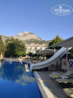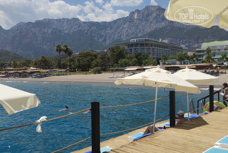 Местоположение очень красивое. Восхитительные горы, отель весь в зелени и цветах. Сад из деревьев апельсинов, бананов, инжира, граната!Идти до пляжа спокойным шагом 10 минут по теннисной зелёной улице.Вдоль многочисленных рядов магазинчиков,кафе, аптек, туристических агентств.Море великолепно! Теплое, обволакивающее...выходить на берег вообще не хотелось .Купались по 2 часа не выходя из воды...)) Заход в море мелкая галька и песок.Тапочки не нужны.На пляже есть бар только с напитками.Каждый час ездит автобус на пляж с отеля.Расписание на фото.Еда в ресторане хорошая ,вкусная,очень разнообразная и рыба и мясо и курица каждый день.Каждый день из фруктов были яблоки, сливы, абрикосы, апельсины, арбузы.С 11 часов у бара начинают печь лепешки с сыром и с мясом.С 16-17 на рецепшен сладкая выпечка.Голодными никогда не были))).Интернет ловит на рецепшен.Но слабый.Очень долго крутит чтоб отослать фото.Да и много желающих сидит там.Ходили на бесплатный вайфай в туристическое агентство "Султан".Оно прямо рядом с отелем слева .Так как брали у них 2 экскурсии, то сам хозяин Мехмед любезно предложил нам пользоваться интернетом бесплатно.Там всё летало и фото и видео отправляли.Кстати брали у него 2 экскурсии Остались очень довольны! Особенно от рафтинга 4в1.Столько впечатлений и адреналина!!! Просто супер!!! Кстати если поедите на рафтинг берите с собой чехол непромокаемый для телефона! У вас будут суперские фото и видео! Ещё брали тур на вечернее шоу в парке Легенд.Тоже фотки обалденные!!! Это другая Турция...В следующий раз приедем возьмём у него тур Каппадокию.Вечером в отеле с 20 часов деткам показывают мультики на большом экране, потом мини диско, потом программа для взрослых или шоу или дискотека.Еще аниматоры бесплатно,желающих возят в Кемер на ночную дискотеку с 23 до 4 утра. В отеле отдыхают и русские и украинцы и белорусы и немцы и казахи и поляки и даже сами турки.И все любезны и дружелюбные.По поводу номера,хочу сказать ,что всё очень чисто, уборка каждый день.В номере телевизор с русскими каналами , но мы не смотрели его.Так как в номер приходили только переночевать)Кстати пульт от кондиционера прикручен в чехле к стенке, чтоб не потерялся) Но все работает ,если на него нажимать не направляя на кондиционер.Через дорогу прямо от отеля,есть магазин продуктовый.Принимают и рубли и доллары и евро.Вообще не меняли деньги на лиры.У них что доллар ,что евро по 100 руб курс.Карты "МИР" не работают.Но можно делать перевод , если работает интернет.Брали в этом магазине вино дынное.Первый раз такое пробуем .Вообще у них есть дегустация вин, перед тем как брать.Пробовала гранатовое и из тутовника.Тоже неплохое. Так что отдыхом довольны.Все понравилось.