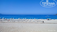 Отель расположен совсем недалеко от пляжа, идти минут 3-5. Пляж галечный. Для купания нужна обувь. Море очень голубое, как бассейн, и чистое. На пляже много туалетов, в июне были бесплатные и чистые))
