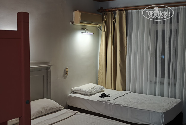 Прилетели поздно, в около 10 часов вечера, нас отправили поесть ночной суп - суп так себе, но поесть можно с хлебом после долгой дороги и нескорого завтрака. Далее регистрация и номер огромный на последнем этаже, благо есть два лифта грузоподъёмностью 240 кг (3 человека), лифты без вентиляции, порой было очень душно, а в одном из них периодически одна створка лифта не закрывалась полностью. На второй день вышел из строя кондиционер, номер нам поменяли, при этом предложили выбор либо на следующий день получить большой номер, либо сразу переехать в меньший номер. Мы выбрали второе, ждать не хотелось. В маленьком номере тесновато, но и нам не хороводы водить, да и кондиционер лучше справляется с меньшим помещением. В этом номере почему-то пожарный извещатель оказался закрыт транспортировочным колпаком, а так как потолок деревянный это не совсем безопасно. Ещё один нюанс с деревянным потолком, который только на последнем пятом этаже, это то, что обрешетка не звукоизолирована, а в санузле там ещё и между вагонкой есть щели через которые видна просвечивающая кровля и слышны все звуки природы и соседей. Питание не назвать отличным, но и совсем плохим тоже, голодными не останетесь и какое-никакое разнообразие тоже имеется, другое дело расположение "ресторана" - на улице у дороги D-401 из Анталии в Мерсин, пыли нет, но звуки дороги и жара из-за отсутствия кондиционера не добавляют плюсов. В период нашего пребывания были проблемы с полотенцами, потом завезли большую партию полотенец, но они не вытирают, а только оставляют вату на теле. Со временем думаю ваты на них не останется, а начнут ли они при этом лучше впитывать влагу не могу знать. В целом же состояние отеля неплохое. Персонал приветливый. Пляж. Он есть. Идти до него минут десять, недалеко от отеля надземный переход при спуске с которого сразу переходишь зону отгрузки мусора другого отеля и иногда там дорога бывает залита остатками пищевых отходов с соответствующим запахом, но самое печальное дальше, при повороте в сторону пляжа зона отгрузки отходов другого отеля и вот там кроме того же что и около надземного перехода, могут стоять контейнеры с мусором и соответственно все ароматы этого великолепия. А дальше дорога между двумя отелями где также могут проезжать машины. Сам пляж песчано-гравийный, как и вход в море, но вот в море огромные каменные глыбы, чуть подальше начинается песок, пляж по соседству после пирса немного получше, он находится правее. Этим пляжем мы и пользовались, никто не возражал. Шезлонгов не много, но за баром можно найти матрасы пляжные и расположиться на свободном месте. В самом баре, который совсем не похож на бар, только вода и безалкогольные напитки, которые подает один человек, он же к 12 часам готовит какие-то закуски, но мы в это время ни разу там не были. В этом же помещении с обратной стороны две кабинки туалета, одна кабинка душевая и одна для переодевания и умывальник. К слову, в один из дней я там забыл маску и трубку для плаванья, на следующий день спросил у бармена и он тут же мне её вернул, я естественно отблагодарил небольшой денюжкой. На территории отеля нормальный бассейн с тремя уровнями глубины плюс детский бассейн, две горки. Территория небольшая, но тем и лучше. Сейф в номере платный, но при заселении ключ был оставлен в замочной скважине, чем я и воспользовал