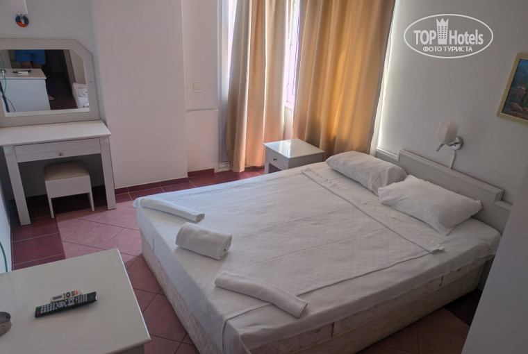 Это больше не отзыв об отеле, а ПРЕДУПРЕЖДЕНИЕ о том, что оператор FUN&SUN, через который мы покупали тур (да и все другие операторы) вводит людей в заблуждение, указывая при продаже номер типа Стандарт и прикладывая в описании отеля фото Семейного номера. В отеле, как оказалось 4 вида номеров: два типа Стандарт немного разных по площади, и два типа Семейных - один однокомнатный с двумя обычными и одной двухъярусной кроватью (как раз тот, что на фотографиях в описании отеля) и один двухкомнатный с 4-мя кроватями и диваном. И если забронировать номер для 4-х, то они подтвердят, а когда приедете в отель, вам дадут ключ от номера типа Стандарт размером примерно 3 на 3 метра и одной кроватью (см. фото) и скажут при этом, мило улыбаясь, "Вы же забронировали Стандарт". И когда вы спросите "А как нам размещаться", ответят "Можем поставить еще одну кровать". Вы по возмущаетесь, может куда-нибудь позвоните, они сделают вид, что думают, как решить вашу проблему, а потом предложат доплатить за семейный номер - чуть меньше за однокомнатный, чуть больше за двухкомнатный (у нас было 50 и 70 долларов за 11 ночей). Очень похоже на обычный развод.