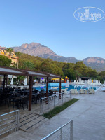 Приехали в отель в 9,30 быстро прошли оформление и нас отправили на поздний завтрак. Заселение сказали будет в 14.00. Я настаивать не стала, мы с дочкой пошли пройтись по местным магазинам. Пожарились на жаре и вернулись. Я решила попросить заселить нас и на мое удивление мне сказали что освободился для нас номер в 6 корпусе. Рядом женщина истерила, что не за что не пойдет жить в этот корпус. Что он ужасен и все такое. Но мы не смотря ни на что с радостью согласились, дабы не терять драгоценное время отпуска! Номер оказался большой на 1 этаже с 3мя кроватями (2х спал и 2 односпалки) на четверых. 6 корпус получается самый дальний и самый спокойный. Сюда не доходят никакие шумы дискотек и других кипишных мероприятий с главного корпуса. Рядом игровая комната и бассейн с чудесным видом на горы.