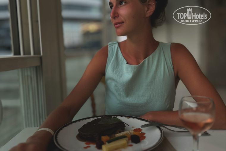 АляКарт. Отдельная веранда на втором этаже. Вид классный. На выбор заказываешь из меню горячее и десерт, закуски сразу на столе стоят. Записывались сами на терминале в лобби, все удобно и просто. Выбрали даты, ввели номер и записались.