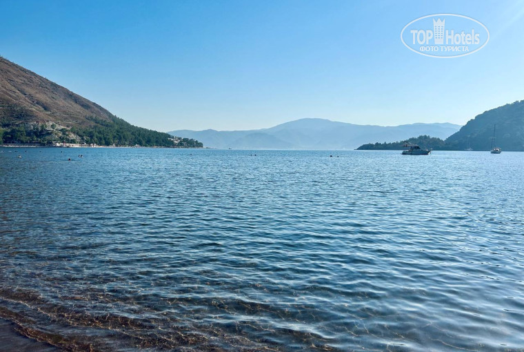 Море. Во всех отзывах читали что до моря 7 минут, так и есть, до моря 7, но до пляжа от отеля идти еще 7 минут. Вообщем около 15 минут придется топать. На пляже всего 20 желтых стареньких шезлонгов на весь отель. Но хотя бы есть зонты. Заход в море - песочек, нет ни камней, ничего. Море прекрасное, примерно на середине песчаная коса, можно достать до дна и спокойно ходить, в некоторых местах так можно дойти даже до буйков. Море красивое, прозрачное, но только до обеда, дальше и позднее оно мутное, вечером много народу. Но если уплыть подальше, то становится лучше.