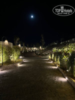 Большая, зеленая, чистая территория. Везде фонари, все освещено, есть фонтанчик, цветы есть, кактусы, пальмы