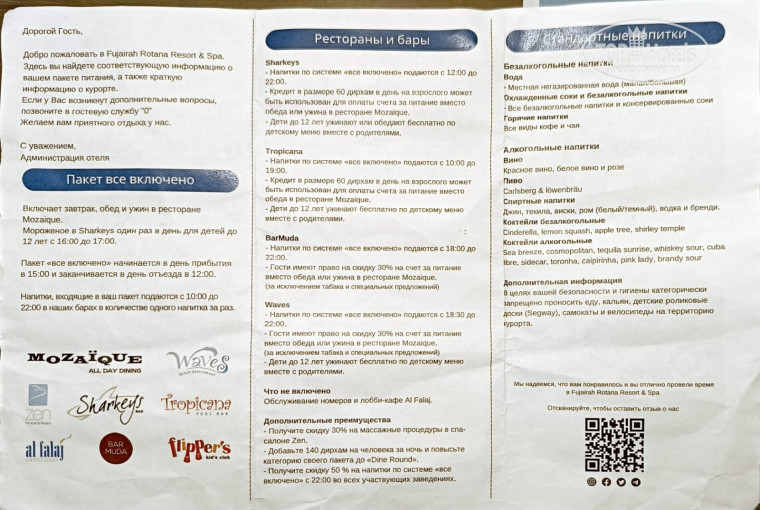- напитки по системе "все включено" вопреки выданной нам на руки концепции выдают по несколько штук в руки и вообще выдают их без ограничения. В концепцию входят даже алкогольные и безалкогольные коктейли, список стоит прям на баре. В целом, рекомендую ехать в отель именно по этой системе, потому что пить в такую жару хочется без конца, покупать напитки не вариант (дорого). При это Ультра все включено (он называется Dine around) тоже не рекомендую, потому как в цене разница ощутима, а фактически ее почти нет. Только если вы ценитель какого-то особого элитного алкоголя, который не входит в просто все включено... Ужины в ресторане Waves, которые якобы входят в концепцию ультра, тоже особо не нужны, потому что питание в основном ресторане всегда разнообразное, новые блюда, от однообразия не устаешь. И этот ресторан всегда был пустой, вообще не видела, чтобы люди туда ходили.