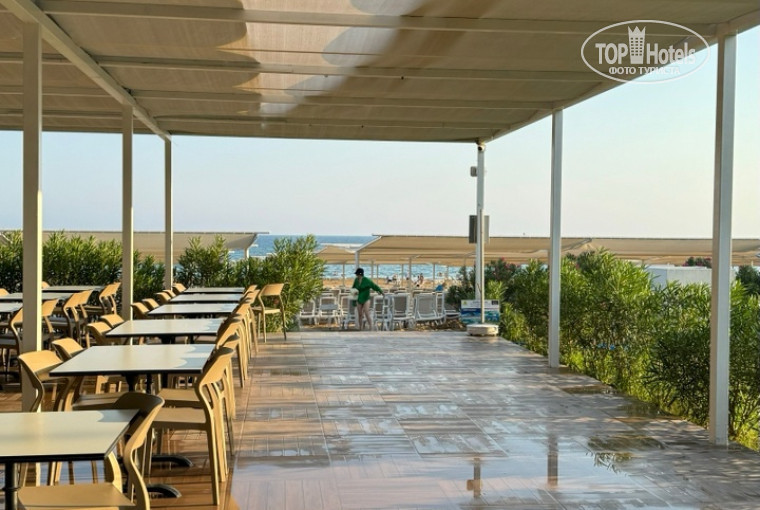 Два больших бассейна, есть водные горки. Людей в бассейнах всегда много, но мы были в основном на пляже. Там очень комфортно, следят за порядком и чистотой. Аниматоры всех приглашают на утреннюю гимнастику, поиграть в боччу (детская, взрослая) и волейбол. Пляж находится в 10 минутах ходьбы, можно доехать на микроавтобусе, ходят часто. Пляж песчаный, заход в воду пологий. На глубине есть камни, надо быть осторожней. Не смотря на большое количество отдыхающих лежаков хватает на всех. По дороге на пляж есть мостик через речку, где можно покормить рыбок и черепах.