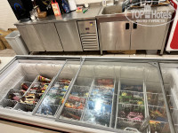 Фрукты всегда свежейшие и их много . Мясо, курица, рыба , овощи, сыры, пицца, бургеры всего больше чем достаточно.