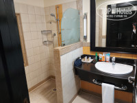 Утром, после завтрака, подходим к администратору насчет замены номера, а он: «Номера обычно бывают готовы после 12.00, подходите после обеда». Досадно, но ладно. Пошли прояснить пару вопросов по мобильной связи к сотруднице Guest relations, та направила нас за ответом на ресепшен. Подходим с вопросом о работе Etisalat, а нам говорят: «Ваш новый номер готов. Ваши вещи запакованы?». Мы тут же направились в номер, вслед за нами пришел менеджер по размещению и уборке, помог все уложить и перенести в другой номер в этом же корпусе. На сей раз в номере было 2 кровати, комната довольно просторная, все на месте. Все чисто, постель без пятен, подушки и матрасы нормальной жесткости, шторы не провисают, телевизор большой, куча иностранных каналов (русскоязычных нет), чайник + пакетики с чаем, кофе и сахаром, чашки, стаканы. Холодильник стандартный, охлаждает слегка. Минибара нет, выдаются талоны на получение шести бесплатных напитков в одном из магазинчиков в торговой галерее. Несколько странно: почему заранее не поставить эти напитки в холодильник? Хотя, наверное, это потому, что гостю дается право выбора между фантой, колой, спрайтом и соками. Мебель, хоть и не новая, но в отличном состоянии, стены не ободраны, освещение отличное. Ключ – карта, ни разу не размагничивалась. Сейф работал исправно. Санузел тоже в приличном состоянии, кафель чистый, перебоев с водой не было. Шампуни, гели для душа, кондиционер для волос, лосьон для тела – все в наличии. Удивило, что в отеле такого уровня, в номере отсутствовали швейный набор, зубные щетки, одноразовые станки, фирменный блокнот для заметок, ручка, халаты, тапочки и гладильная доска. Возможно, все это выдается по запросу. Нам все это было без надобности. Номер был на первом этаже, поэтому вместо балкона у нас была открытая терраса, выходящая на дорожку между корпусами. Звукоизоляция в номере идеальная, ни разу не слышали ни голосов, ни скрипа мебели ни сверху, ни по соседству.