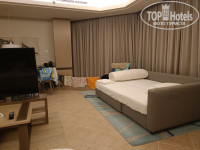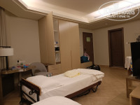 РАЗМЕЩЕНИЕ. Туроператор Анекс с отелем немного лажанулся, мы просили три отдельные кровати для трёх человек, вроде бы и в ваучере это как необходимое требование указали, а на месте при заселении стали усиленно предлагать одну большую двуспальную кровать и одну маленькую раскладную софу. Удалось решить вопрос только какому-то главному менеджеру, он предложил нам всё-таки номер с тремя кроватями, правда без балкона, но большой (suit) с окнами до пола и видом и на сад и на горы, на 4 стороны)) В номере есть сейф, 3 стола со стульями, большой телевизор, минибар-холодильник, кофемашина, чайник, гладильная доска и утюг, которым мы в первую минуту сожгли юбку до дыр, но не хватает большого зеркала в комнате. Розетки английские, на ресепшн дали 2 переходника и один у нас был с собой.