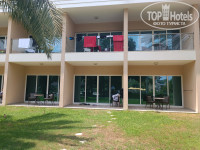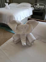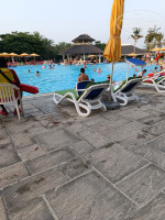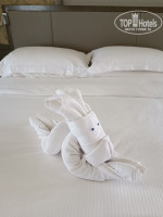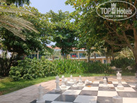 ТЕРРИТОРИЯ И ПЛЯЖ. Территория большая, зелёная, много пальм и других деревьев, что удобно когда идёшь на пляж. В этой растительности живёт много птиц породы скворцовых (майны), приятно щебечут. Много ворон у бассейна. Один раз видели даже зелёных попугаев на пальмах. Пляж у отеля свой, большой, есть вся инфраструктура. Работает с раннего утра до 19 часов, потом спасатель начинает свистеть и выгонять всех из воды. К сожалению, попали на сезон волн (первая половина июля), две недели волны были то очень большие (в этом случае закрывали пляж совсем, за 2 недели такое было 2 раза), то средние. Соседние отели вообще полностью закрывали пляж, а у нас все было открыто. Штиля не было совсем. Говорят в штиль на пляж приплывают черепахи и другая живность, но мы кроме волн и приносимого ими мусора ничего не увидели, увы. Желающих поплавать не намочив голову (я к таким не отношусь, но среди женщин наверно таких немало) волны сбивают с ног или накрывают с головой. Выходишь из моря и можно дворником работать, столько с тебя песка сыплется. Иногда на стопе обнаруживались пятна мазута, оттираешь с ног прося тряпочку с каким-то маслом у выдавальщика полотенец. Лежаков и зонтов достаточно в любое время, днём вообще почти пустой пляж. Бассейн с охлажденной водой, но довольно маленький, глубина - по грудь, рассчитан явно на детей, и из-за волн был переполнен отдыхающими.