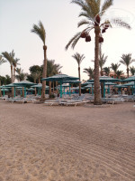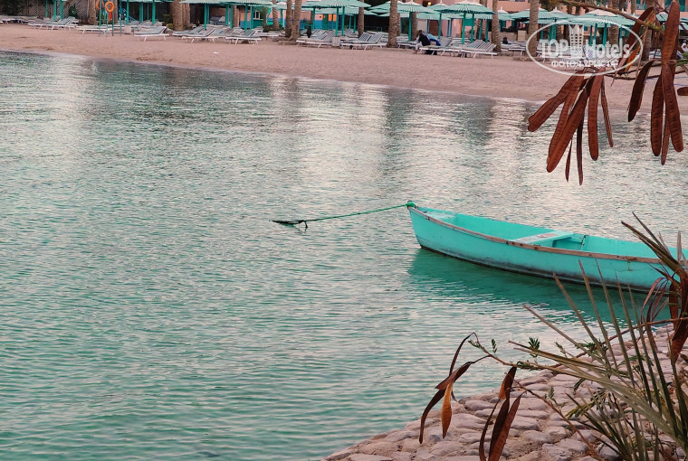 Пляж, особенно в первой половине дня - прекрасен. Народу практически нет, лежаки никто полотенцами не занимает. В 8 утра, а то и раньше мальчик полотенца уже выдаёт. Лежаки тяжёлые, деревянные, но высокие, широкие и устойчивые, матрасы старенькие, но толстенные, мне понравились, очень удобно. Полотенца тоже старые, но лучше тех, что в номерах. Вход в море - босиком не очень удобный, в кораллках - отлично. Рыбки есть, ежи не попадались. И слева и справа стоят яхты, вроде не мешают, но запах солярки иногда есть. С 10 утра на пляже работает бар, в 13.00 обед, но всего пара вентиляторов работает, поэтому там очень жарко. Самый неприятный элемент пляжа и вообще отдыха - зазывальщики в СПА. Тот что постарше вообще - неприятный мужик. Они не понимали "нет" ни на каком языке, включая арабский, подходили по два раза за час, достали.