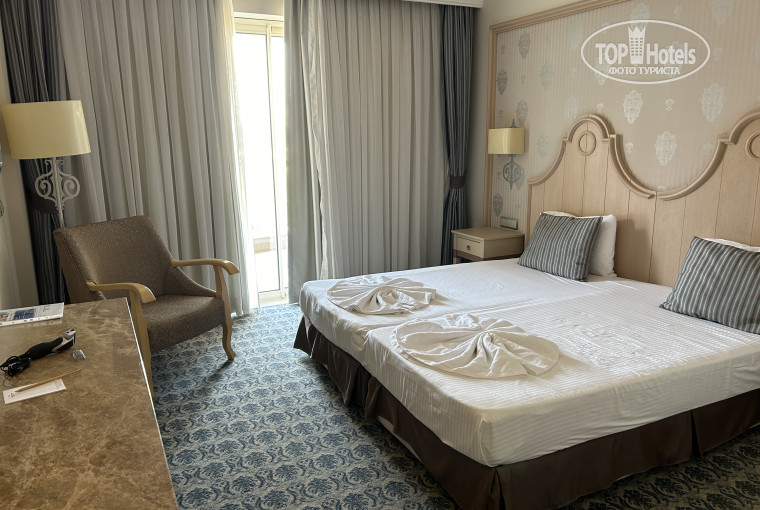 2. Номер - 41 м2. Без замечаний. Репродукция С. Дали на стене. Ковролин в комнате, остальное - плитка. Кондиционер обеспечивает комфорт, когда за окном +40С. Есть гардеробная комната с сейфом и кодовым замком на двери (для владельцев брюликов).