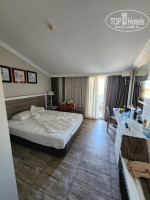 Номера: Мы жили на 4м этаже. Нормальный и чистый номер. Бар пополняют каждый день (пиво, газировка, вода, сок). Убирались каждый день, но как и везде за такую стоимость тура - "не до блеска", но нам было норм. Полотенца меняли каждый день, фен есть (хороший). Чая, кофе, чайника - нет. Щёток, пасты - нет. Дозаторы с мылом у раковины и в душе, налито везде одно и тоже. Мы брали все своё. Ещё было 2 лосьона для тела при заезде, но больше нам не ставили. Сейф есть, шкаф большой, полок для вещей в целом много, вешалки есть. Сушилка и в душе и на балконе. На балконе стол и стулья, сидели там вечерами иногда, слушали свою музыку. Кондиционер охлаждает.