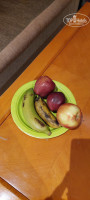 Фрукты отборные, ровные и красивые - яблоки трёх видов, крупные сливы, груши (твёрдые и не сладкие), бананы, апельсины, финики, свежий инжир.