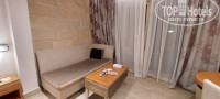 Номер большой, примерно 40 кв.м. Две кровати, диванчик, столик. Телевизор, чайник, каждый день ставят 1,5 л воды, чай, кофе, сливки и сахар. Пол плитка.
