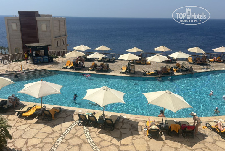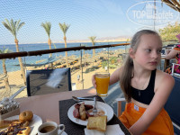 Рестораны. 2 ресторана основных. Утром мы всегда завтракали в ресторане Сансет (возле пляжа), там красивый вид на море, но только утром, потому что в обед без кондиционера не выжить... В обед и вечером принимали пищу в большом, где ресепшен. Ходили в аля-карт рестораны - итальянский и морской. Морской нам не понравился. Почти те же блюда, сам себе накладываешь, только официанты приносят напитки. В итальянском было круто. Стейк, паста... все шикарное. Кстати, отметила отличное приготовление говядины египтянами - стейки через день были, баранину тоже умеют готовить. А вот блюда из фарша как-то не особо были вкусными, очень жесткими, исключение - паста. В общем, еда нам нравилась. С напитками не очень - надо было стоять в небольшой очереди на баре внутри ресторана, чтобы попросить дать стакан обычной воды, вина, пива, сока... Небольшая очередь только благодаря весьма расторопным ребятам-барменам. Людей всегда было очень много, но скорость работы персонала зашкаливала - перенакрывали стол за секунд 20. Пиво среднее, самое простое, цитрусовых нот не ждите). Вино тоже средненькое, но мне важнее вкусный стейк и овощи на гриле в моей тарелке, нежели вино в бокале. Были бургеры, были крабы (не вкусные, никакие), были королевские креветки (тоже без вкуса). И фрукты как-то не особо понравились - дыни, арбузы, персики. Может, живя на юге, мы просто избалованы изобилием таковых. поэтому). Резюмирую - мне было вкусно. Говядина в любом виде, баранина, овощи, паста, лазанья - все было вкусно. Все остальное тоже было неплохим. Выпечка - шикарная! намного вкуснее турецкой. Не понравились овощи все свежие (огурцы, помидоры - у нас в январе из теплиц вкуснее), фрукты так-сяк. Но это особенности местного климата, скорее. В баре пила коктейли алкогольные 9бар возле бассейнов, на пляже). Бары возле каждого бассейна, а их 2 или 3, и на море. Пойдет. На баре в определенное время предлагают что-то типа мороженого из автомата жидкое. Дочери понравилось, а мне как замороженное и потом взбитое молоко, даже не сладкое. На пляже и возле бассейна есть перекусы - бургеры, пицца.