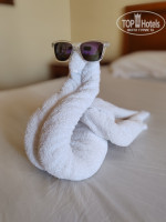 Отель нуждается в реновации. Мебель как в номерах так и в лобби уже довольно уставшая. Территория не особо большая, но симпатичная, ещё бы убирали её качественно, было бы замечательно. В волновом бассейне плавали палочки от кофе и один раз обнаружили в нем куриную кость (возможно принесли вороны, они в бассейне частенько пьют воду). Номера уставшие, мебель старая, но крепкая, ванна тоже, сантехника устала, но рабочая. Номера убирают плохо. За 10 ночей полотенца поменяли пару раз, постельное ни разу, хотя просили и оставляли чаевые, за то один раз накрутили лебедя и кораблик (за оставленные чаевые). Питание вроде разнообразно, но есть не особо что. Мясо только по выдаче и то ложку (как от сердца оторвали) Сладости вкусные. Персонал ресторана молодцы, парни убирают, стараются. Чай и кофе только на завтрак, а в обед и ужин пейте, лимонад, сок, алко.. Бассейны это плюс, их несколько и горки есть. Но у бассейной тишина, музыки нет, скукота. Анимация вроде есть, но её особо не видно. Пляж, коралл супер, рыбки и тд. С пирса всё время волны. Шезлонги убитые в хлам, гвозди торчат. Бар на пляже есть. Wi-Fi хорошо ловит только в лобби, в остальных местах с перебоями, на пляже редко его можно поймать. Отдых пенсионный, скучно в отеле, делать нечего.