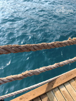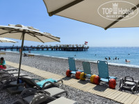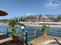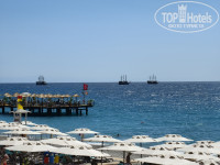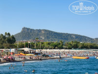 На пляже и пирсе чисто. Мусор не летает. Вход - мелкая галька. Большая часть людей не одевала коралки, хотя с ними намного комфортнее заходить в воду. Персонал ежедневно подставляет ко входу в море деревянный помост с поручнями, мелочь, а приятно. Есть бар. Море очень чистое и теплое, как и всегда в этом регионе. Много рыбок разного размера. В море установлен понтон с которого можно нырять в воду, и просто посидеть отдохнуть вдали от берега. На пирсе есть душ и холодильник с водой и айраном, чтобы не ходить далеко, удобно.