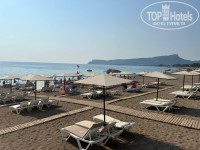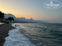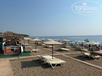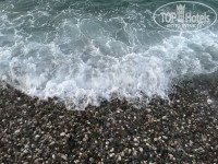 Галечный пляж находится в 7 минутах пешком от отеля. На пляже можно купить свежевыжатый сок из фруктов и ягод, мы брали - это очень вкусно и стоит 50 лир. Без аквашузов в море не зайти, слишком крупная галька. Пляж оборудован неплохо, есть зона для фото, пляж чистый, вечером туда приходят местные жители.