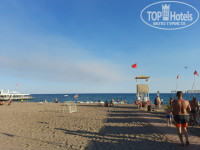 Море: неприлично теплое. В дни нашего отдыха чаще были волны, но не очень большие, мы спокойно на них попрыгали. Лежаков очень много и даже при синдроме – встань раньше соседа и займи, всегда можно было найти место. Пляжный бар с напитками и снековый удобно расположены. На море каждые минут пять катается машинка. Пешком тоже недалеко. Из минусов – пирс при нас был все еще на ремонте. На соседний не пускали. Песок чистый.