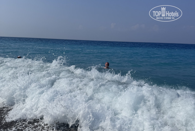 Еда однообразная, но мы не прихотливые, грязная посуда везде!!! Заляпанные стаканы… Интернет и сейф в номерах платный, постоянные волны от сильных до очень сильных. Вход Галька, лежаки далеко от берега, за ребенком не понаблюдать из под тента, очень резкий переход глубин…