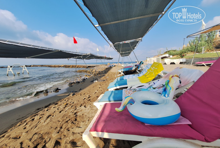 2. Уютный пляж. Полотенца отель не даёт. НО + на пляже хороший бар с едой, душевая, туалеты, детская площадка, спортивные тренажёры, волейбол. Лежаки всегда можно найти.
