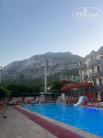 Сама территория небольшая, но довольна уютная, вид на горы просто абалденный. Есть бассейн, горка.