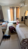 Приехали мы в отель в 9, заселили нас, можно сказать, почти сразу, в 10 часов. Заселили в новый корпус, в 3х местный номер, просторный и уютный (фото можно увидеть). Раз начала про номер, тогда расскажу про него. Мы жили в 528 комнате, вдруг кто-то тоже там будет) номер просторный, все работало, кондиционер поставлен новый, вешалки в шкафу были, балкон был, достаточно хороший, со стульчиками и веревками для сушки одежды. Мебель стандартная для Турции, когда мы были в 2019 году в пятерке, было точно также. Перейду к санузлу. Современный ремонт, очень даже стильный. 1 раз не было воды утром, но всего на час. Единственный минус, который хотелось бы устранить - это сделать шторку для душа. В целом когда нормально и аккуратно моешься, то все хорошо, но иногда может попадать вода в другие зоны санузла, что не всегда приятно. Но мы кинули полотенце на входе в санузел, и все было хорошо. Нам данная проблема была не критична.