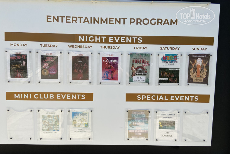 Анимация вообще не соответствует уровню 5 звезд. Полное разочарование по сравнению с прошлыми годами. Очень дешевые приглашенные коллективы. По субботами сами аниматоры проводят конкурс женщины против мужчин, развлечение 10летней давности, которое соответствует уровню дешевой тройки, видимо совсем нет бюджета для приглашения артистов. Хотелось бы отметить Юлию, Джана и Эмирхана активные и дружелюбные ребята, не давали скучать. Также хотелось бы отметить диджея Хусейна включал очень классные и современные треки. Эти же ребята были в центре внимания на вечерних дискотеках, зажигали на танцполе и общались с гостями. Отдельное спасибо шефу анимации Барышу и Айжан из отдела по работе с гостями за организацию поздравления в День рождения! Поздравление супер!