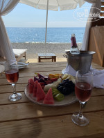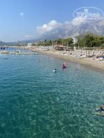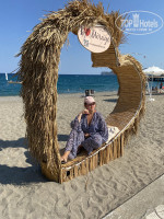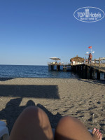 Есть пирс и две плавучие платформы, в море у берега есть рыбки, очень противно кусаются. Пляж песчано-галечный, при входе в море галька. Я бы рекомендованы взять коралловые тапочки. Мы спускались с пирса сразу на глубину. Вода необыкновенно красивого цвета, теплая, но очень часто приплывал мусор, в прошлые годы такого не было. На пляже есть беседки за дополнительную плату (120 евро на первой линии). На пляже очень навязчивые работники спа и магазинов, которые предлагают свои услуги.