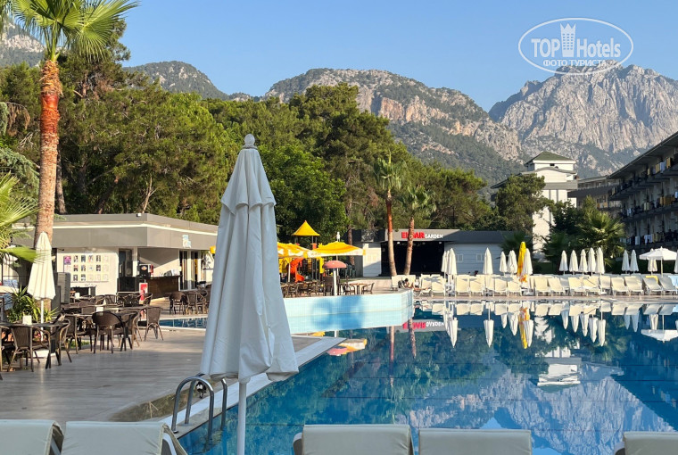 На обед тоже много зелени, овощей в разных видах, мяса и рыба небольшая. На ужин тоже самое, но что-то еще делают на гриле, курицу, рыбу красную (каждые 3-4 дня), как то давали стейки тунца (очень вкусные, но немного суховатые). ЧТО НЕ ПОНРАВИЛОСЬ: фруктов очень мало, всегда яблоки и апельсины на завтрак и обед, на ужин прибавлялся арбуз и невкусная дыня. БОЛЬШЕ никаких фруктов не было, считаю это большим минусом. Мы покупали на рынке отдельно очень вкусную черешню (60 лир кг) и клубнику (150 лир). Так же были большие очереди за стейками из красной рыбы, тунцом и другой едой, приготовленной на гриле, а так же за арбузами. Десерты были однотипные, но разных цветов, кое-что понравилось, но в основном не очень (лишь на ужин и редко на обед давали пахлаву разных видов и еще что-то очень вкусное (например, маленькие шарики-пончики в сладкой пропитке). Мороженое выдавали у бассейна с двумя горками с 16 до 17, за ним выстраивалась огромная очередь, минут через 20 от начала раздачи она заканчивалась и можно было снова подходить (было трех видов: шоколадное, ванильное и клубничное -все очень вкусные). Кофе не пробовала из автоматов, пила чай (обычный), для детей кроме странных соков типа юппи и газировок из автоматов было нечего пить. Воды в бутылках в разных холодильниках везде по территории и в барах очень много. Пили много воды и содовой. Хочу отметить работу парней- официантов, они всегда очень быстро грязную посуду убирали со столов, даже удивительно! Персонал хорошо следил за этим. Меняли скатерти и тд, молодцы в общем, работали как пчелки там.
