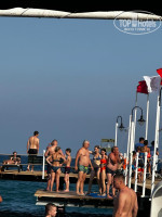 Пляж, конечно, узкий, лежаки никогда не занимали, но всегда находили, на 3-4 ряду. Матрасы на лежаках не успевают просыхать, мокрые. Пирс хороший, и для взрослых место прыгать и для детей, сын просто унырялся весь, отлично что возле детского душ с водой есть, когда глаза уже разъедало, обмыть удобно. Очень много людей на пирс проходят с отеля Эльдар, (4* через дорогу), но один охранник пытался отслеживать, бдительный, молодец.