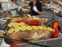 В аля карте рыбном (бесплатно, но записываться за 2-3 дня с 9-10) пробовали лосось и форель, лосось просто офигенный, а вот форель как на пару, никакая, не поняли мы это. впервые в жизни попробовала горячее мороженое в кляре- вкусное.