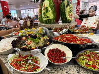 Питание все хорошо, вкусно, но иногда в обед хотелось куринного супчика, не пюре. Очень странно, что там за завтраком только один раз за неделю был арбуз. Ранее, в других отелях он был всегда и везде. Но потом нашли и плюс в этом-распробовали очень вкусные мини груши, они выглядят твердыми, но это только на вид, на самом деле очень вкусные. Персики, нектарины, абрикосы- какую возьмешь, одна дубовая, другая сочная и сладкая. На гриле немного передерживают индейку, она становится суховатой. А так каждый день было что-то новое, вкусное. Повар в зале, контролирует раздачу. Ни у кого не было расстройств.