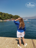 В отеле всё хорошо, питание разнообразное, в номерах чисто, в санузеле предусмотрен поднос с разными принадлежностями. Пляж многоуровневый длинный большой, слева от пирса помельче заход для деток. В правую сторону глубже. Водная горка прикольная. Природа шикарная, территория красивая, много разных зон. Лестниц много, готовьтесь подниматься.