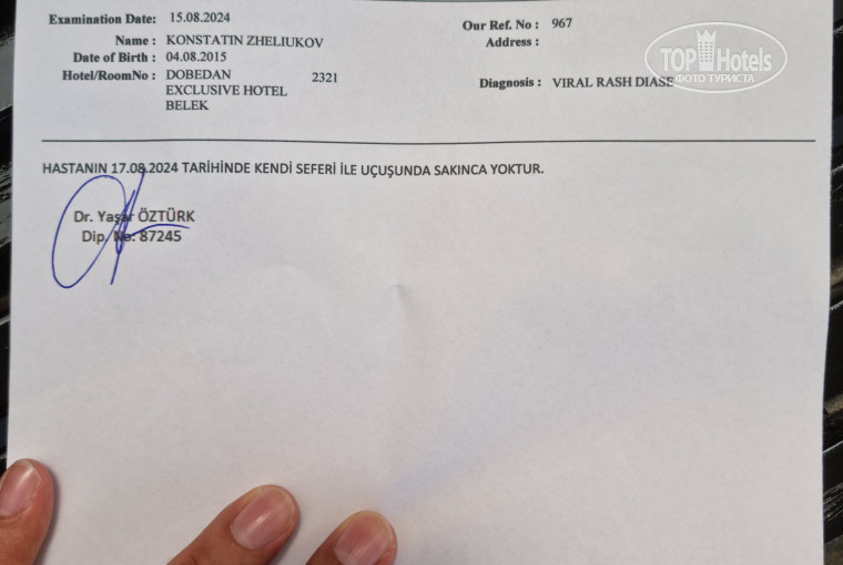 Когда забирали эту справку у доктора гостиницы поняли что мы не одни такие, т.к. к доктору была неслабая очередь