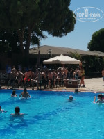 Бассейн большой очень пользуется спросом так же как и бассейн у горок. Вот там с лежаками всегда проблемма.их там мало. Но вся движуха возле основного. дартс. пинпонг,бильярд(платно) аэробика,игры в бассейне и возле него -анимация не на руском, но все более менее понятно. бар у бассейна-только там алкоголь. В ресторане только пиво и вино. Полотенца платные 10е. но мы брали свои.