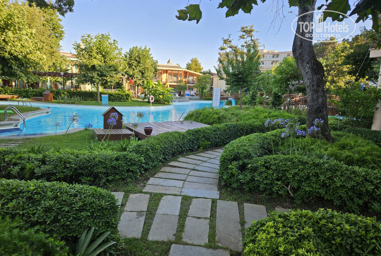 Территория у отеля ОЧЕНЬ большая!! Красивая, много зелени, цветущих цветов.