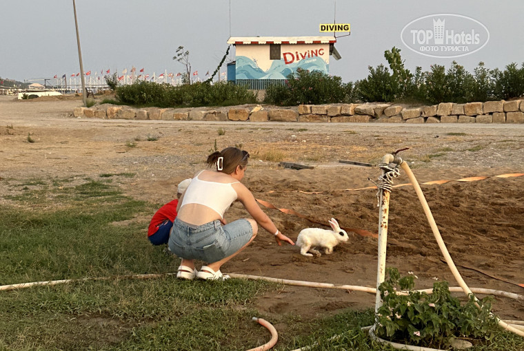 Конечно же отель не тянет на 5 и ультра!!! В целом не плохой, ноооо… Заселили, как положено в 14.00. На ресепшен был такой неприятный турок,видно какой-нибудь старший менеджер, но ощущал себя хозяином отеля. Со всеми разговаривал прям через зубы. Неприятный тип! На четверых в номере оказалось только 3 спальных места. Но в течение часа этот вопрос решили - принесли доп кровать. Две девушки-турчанки минут 15 играли в тетрис с дополнительной кроватью, чтоб уместить ее в номере. Но в итоге им это удалось- запихнули. Места не осталось совсем, только проход от входа до балкона Шириной в 40 см. Ну не страшно. Сейф не работал. Два дня ходили на ресепшен, одни обещания. Но так как он нам и не особо был нужен. Больше мы не просили. Но не смотря на все заявки, сделанные в первые дни , никто не пришел, не позвонил, не отремонтировал. Мебель конечно оставляет желать лучшего! На территории есть мини зоопарк, деткам интересно. Вечером мини-диско, каждый день одно и то же, но малышам все равно, лишь бы музыка была)). Есть луна-парк для деток 👍. Питание на троечку. Каждый день одно и то же. Один раз за неделю была красная рыба. И три раза какая-то пережаренная скумбрия. Конечно голодными не оставались, но и далеко не на 5 заезд питание и даже не на 4((. Очереди были, но их создавали сами отдыхающие. Стоят в очереди к этому грилю и ждут свой кусок, хотя через 3 метра все эти же куски лежат на разносе. Ну видимо пройдя через очередь нагуливали аппетит))). Главный плюс отеля и наверное единственный это море. Оно великолепно!!! Лежаки естественно к 9.00 были все заняты полотенцами!!! Хотя ( видели своими глазами) займут часов с семи утра, а приходят на 5 минут после обеда просто окунуться в море. Не понимаю, им душу что ль греет, что они заняли эти лежаки на пляже.