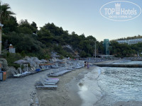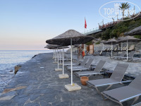 Есть песчаный пляж с пологим входом в море (там с маленькими детьми) и пляжи у скал с поручнями и глубиной. Пляжные полотенца выдаются у бассейна и на пляже - бесплатно и без залога. Отличная зона аквапарка + несколько бассейнов для взрослых и детей (много навесов от солнца , душ, кафе) !!! Море чистое и глубокое. Есть где поплавать и понырять. В воде косяки рыбы (можно кормить с руки) на скалах морские ежи. До обеда море спокойное, после - обычно волны. Купание на любой вкус. Дежурят спасатели. На территории есть свой дайвинг центр + водные скутеры, лодки, парашюты и т.д. Главная проблема - мало лежаков и еще меньше зонтиков!!! Не заняли лежак с утра - ПРОБЛЕМА !!! Мало персонала для уборки пляжа! К вечеру в урнах горы мусора и ветер его уносит в море!!!