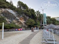 Отдыхали в отеле 04-18.08.24. Огромная, живописная территория отеля - как с открытки! Много разнообразных локаций на разных уровнях: скалы, лес, тропинки, прибой, пляжи. Зона аквапарка со своими бассейнами, ресторанами и детским городком располагается на высоком мысе (море с 3х сторон) - СУПЕР! Народ в основном турки, русские, поляки, немцы, англичане. Из персонала русскоговорящие только аниматоры.