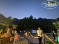 Территория этого отеля не такая большая но и не сказать что маленькая, есть место для йоги ( она проходит каждый день после зарядки ), также есть мини беседка где делают национальные турецкие лепёшки - Гезлёмё. Рядом кстати есть аппарат с очень вкусным айраном ( и да, он там тоже есть), и почти там же находится сцена с анимацией и шоу проходящими по вечерам, ещё одно удобство что рядом пляж, не нужно ходить по 10-15 минут как в некоторых других отелях, буквально 2 минуты и самое главное видно что следят за ней, поливают и чистят, как и сам пляж.