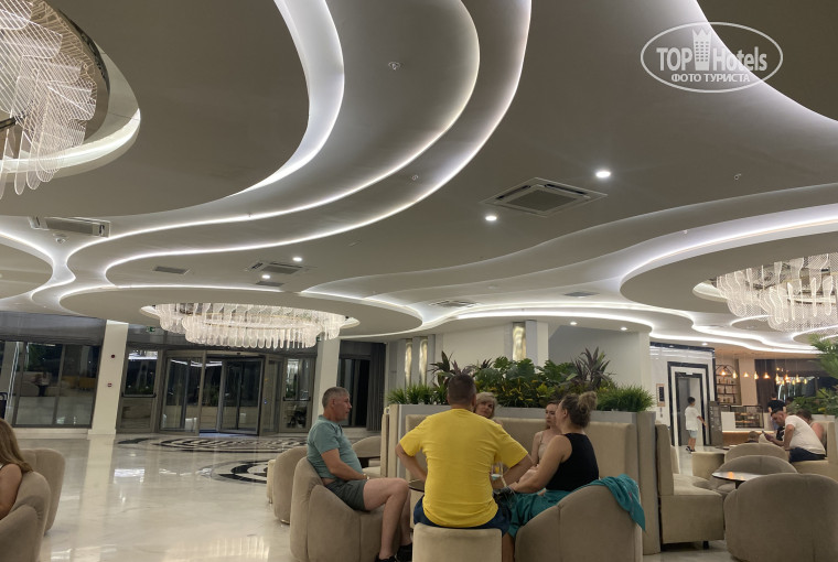 Приехали ближе к обеду . Заселили быстро . На рецепшене носильщик помог донести вещи до номера , кратко рассказал как пользоваться номером . Ну очень кратко . Номер современный , красивый , большой. Был балкон , на балконе столик со стульями , небольшая вешалка для сушки белья. Мини бар в номере , периодически пополнялся . Убирались в номере каждый день . Иногда забывали ставить шампунь и кондиционер для тела. Иногда забывали положить полотенца . Приходилось ходить и напоминать . Питание разнообразное , понравилось . Много разных блюд , не знаю все мы попробовали за время отдыха или нет . Питание устроило полностью . В баре разнообразные коктейли , напитки , без ограничений . Был гид Рустам , открытый парень , днем был на связи всегда, ночью ему не звонили , да и он просил чтобы по ночам не беспокоили . До пляжа ходит автобус, ходит довольно часто , практически не ждали . Пляж очень понравился, песочный , широкая линия! Всегда есть свободные лежаки, потому что их там вероятно около 1000 штук . Вход в море пологий, приятно купаться. Если не ждать автобус, то пешком минут 10, неторопливым шагом . Утром в 7.00 ходили искупаться пешком, самое приятное купание!!). Имеется бассейн . Возле бассейна лежаки приходилось занимать пораньше , потому что места ограничены . Есть небольшой аквапарк , и вечером аттракционы: Американские горки, качели и т д . каждый день вечером анимация, развлечения для отдыхающих. Что не понравилось , то что отдыхающим разрешено курить везде, даже в толпе во время вечернего представления . Приходится дышать дымом. Хотелось бы чтобы были отдельно выделены места для курения. В целом отдых понравился! Отель очень рекомендую !
