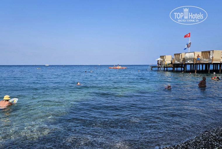 Море. Это кайф просто. Чистое, красивое, теплое. Мы специально выбирали отель с галькой, плавали в аквашузаз. Очень понравилось, что во второй половине дня деревья рядом с пляжем создают приятную тень, и можно спокойно лежать и не бояться сгореть. Заход в море резкий, быстро становится глубоко. Нам, взрослым, понравилось. Крутой пирс, с него классно спускаться в море или прыгать.