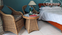 За пару дней до приезда написал письмо с изложением предпочтений по размещению, даже ответ какой-то до отлета пришел: типо, не волнуйтесь, все сделаем. Не знаю, сыграло это какую роль или нет, но номер (328) вполне устроил: 3-й этаж (я просил НЕ первый), двуспальная кровать, довольно далеко от ресторанных грилей, кондиционер работал исправно, хотя и гудел общий блок на крыше довольно ощутимо. Впрочем, мы к нему быстро привыкли. Также, предполагаю, письмо повлияло на комплимент от отеля, который мы обнаружили на 2 или 3-й день в обед: бутылочка белого с набором фруктиков. Очень пригодилась, когда я днями позже сгонял на рыбный рынок за креветками/лангустами, мы даже на обед не ходили.