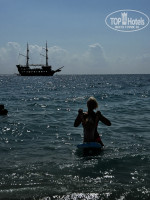 Отдыхала с детьми 4-15 лет в конце августа. Ехать с аэропота (мы первые) 1.20,не утомительно. Заселили в номер 1316 на третьем этаже вид на горы и на общежитие для персонала, не очень комфортно, да,ладно. Номер на троих вполне, четвером не комфотно бы было, очень маленький. В ванне напрягал только душ в стене, ребенка помыть проблематично и серые застиранные полотенца. Сам отель очень компактный, уютный, спокойный, все есть для отличного отдыха, питание на 5+( кому то может мало будет сладостей), до моря не спеша 7 мин, не утомительно совсем, по дороге рынок, котики, собачки, ящерицы. На отельном пляже не лежали, много людей в море, загорали на городском через 300 м на полотенцах, там практически нет людей, благодать, вода чистая, теплая, спец обувь не одевали, супер, наслаждались видами и морем. На пляже бар только с напитками (б/алк), в 11.00 приносили арбуз и дыню. Вечером мини диско и потом не большая анимация для взрослых( но не очень). В баре у бассейна все есть, лучший бармен отеля улыбчивый Омар- профессионал своего дела( ему бы курсы преподавать остальным), жаль, что работал только до 16.00. Вывод: Отель понравился, расположение ( вечером есть где погулять и можно на автобусе сьездить в Кемер), питание, сервис, безопасность. До идеала: улучшить анимацию для взрослых и ВСЕ. От отдыха мы в восторге, будем теперь ездить только в Кемер.