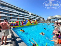 Бассейны. Мы приходили с моря к 16-00, чтобы успеть пострелять из лука и покататься на горках. Водных горок очень много, народу в них тоже. Некоторые горки огонь, особенно оранжевая и желтая в be mine. В детском бассейне кипишь постоянный, даже после закрытия. Ляльке тоже зашли покатушки на детских горках. Около бассейнов очень скользко, не везде лежат коврики. Хотелось бы, чтобы руководство задумалось не только о развлечениях, но и о безопасности на них.