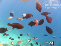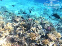 4. Территория у отеля не очень зеленая, но оформлена стильно и со вкусом. Есть два бассейна и еще один маленький детский с водной горкой, радом с который детская площадка. Так же есть водные горки разной формы для всех остальных. Береговая линия метров 500-700 м. Но купаться можно только в лагуне. Так как там, где открытое море от берега метров 10 глубина 20-30 см потом кораллы, которые сложно преодолеть даже в тапочках. Но и лагуны более чем достаточно. Она очень большая – места всем хватит. К тому же из лагуны можно выплыть в открытое море, если вы уверены в своих силах. Я плавал. Вход в воду в районе лагуны песчаный. Глубоко становится в 1-5 м от берега (в зависимости от места) как раз там и начинаются кораллы. Разнообразных рыбок в лагуне очень много, вода очень прозрачная. Тут же есть дайвинг-центр. Так что помимо рыбок увидите и аквалангистов :). Если есть возможность, покупайте перед поездкой в Египет цифровой водонепроницаемый фотоаппарат (стоит сейчас от 5000р. и выше) - не пожалеете оно того стоит.