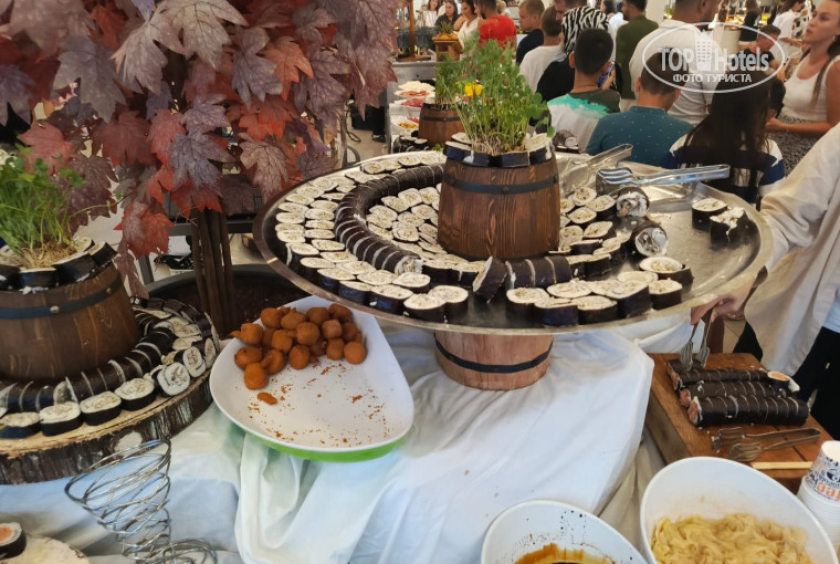 Наш отдых начался 17 августа 2024г. Уборка в номере производилась ежедневно, номера чистые , современный интерьер, сантехника чистая, все работает. Плохо работал телевизор, сообщили об этом не ресепшен, сразу пришли ребята и все починили. Персонал очень внимательный, вежливый. Еда здесь - это отдельная история, она вся вкусная, ее очень много, думаю каждый найдет то, что хочет. Особенно разнообразный ужин: каждый день что то новое. Во время нашего пребывания здесь мы угостились и шашлыками (готовят прямо здесь) из свинины, курицы, и креветками и роллами, была шурпа из говяжьего языка и много всяких вкусностей, названия которых я просто не знаю. на ужин иногда пекут пиццы (начинку выбираешь сам, пекут тут же). Очень много видов вкусных сыров. Людей в залах для еды очень много, но свободный столик мы находили всегда, персонал работает очень быстро, сразу уносят грызную посуду, вытирают со стола. В сотоловых очень чисто. Понравились и бары, девчонки делают много вкусных коктелей ( есть и алкогольные и безалкогольные), можно брать вино, креплкие спиртные напитки, лимонады, соки. Очень огромный бассейн, а вот с лежаками возле бассейна проблема - не всегда находили. Вай фай бесплатный, есть на всей территории гостиницы, очень быстрый, на пляже вай фай тоже есть. Пляж находится в 700 м, можно пойти пешком, в можно поехать на микроавтобусе, более 3 минут мы его не ждали. Пляж очень чистый, песочный, лежаков на пляже предостаточно, они все находятся под навесом. Пляж оборудован мойкой для ног, открытым душем. На пляже есть кафе, есть бар. В кафе еды предостаточно, можно пообедать, тут пекут пиццы, очень убодно! По вечером всегда какая то программа - шоу - в 21.30 - ходили каждый день - все понравилось, было интересно. Есть лунопарк - карусели - ребенку 12 лет понравилось, ходил каждый день, правда придется постоять в очередь (работают с 20.00 до 22.30). Так же понравилось что пляжные полотенца можно получить 1 раз в день (вечером их надо сдать) - получаешь чистые сухие полотенца, и не надо их где то сушить. Вообщем отдыхом в этом году я осталась довольна. отель рекомендую.